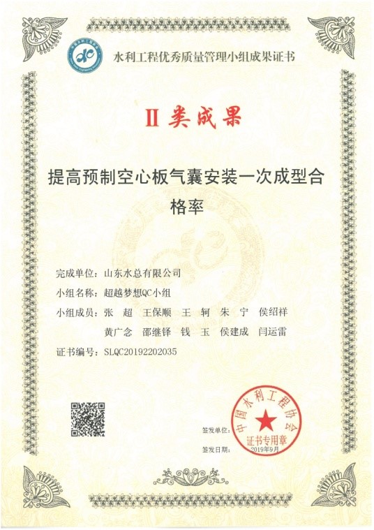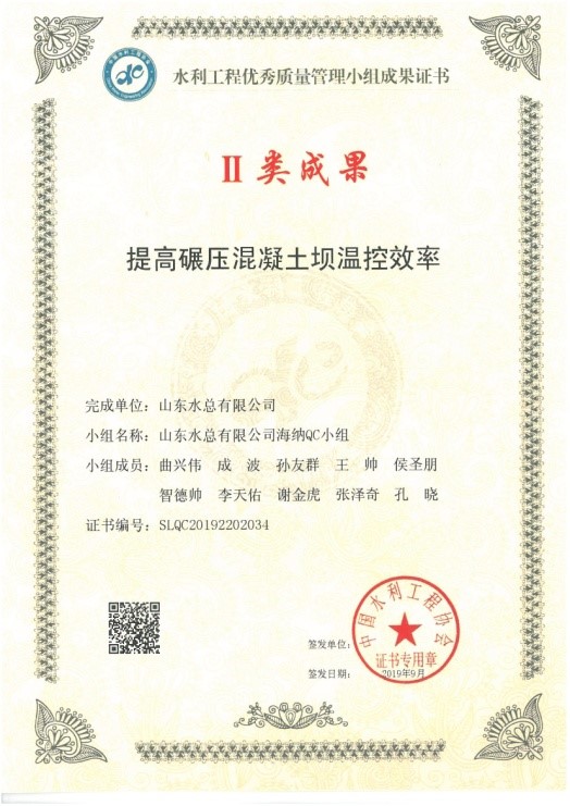 2019年9月24日,由中国水利工程协会举办的2019年度中国水利工程优秀质量管理小组成果发布,乐鱼网页版-乐鱼online(中国) 报送的《提高碾压混凝土坝温控效率》和《提高预制空心板气囊安装一次成型合格率》2项成果全部获Ⅱ类成果奖。