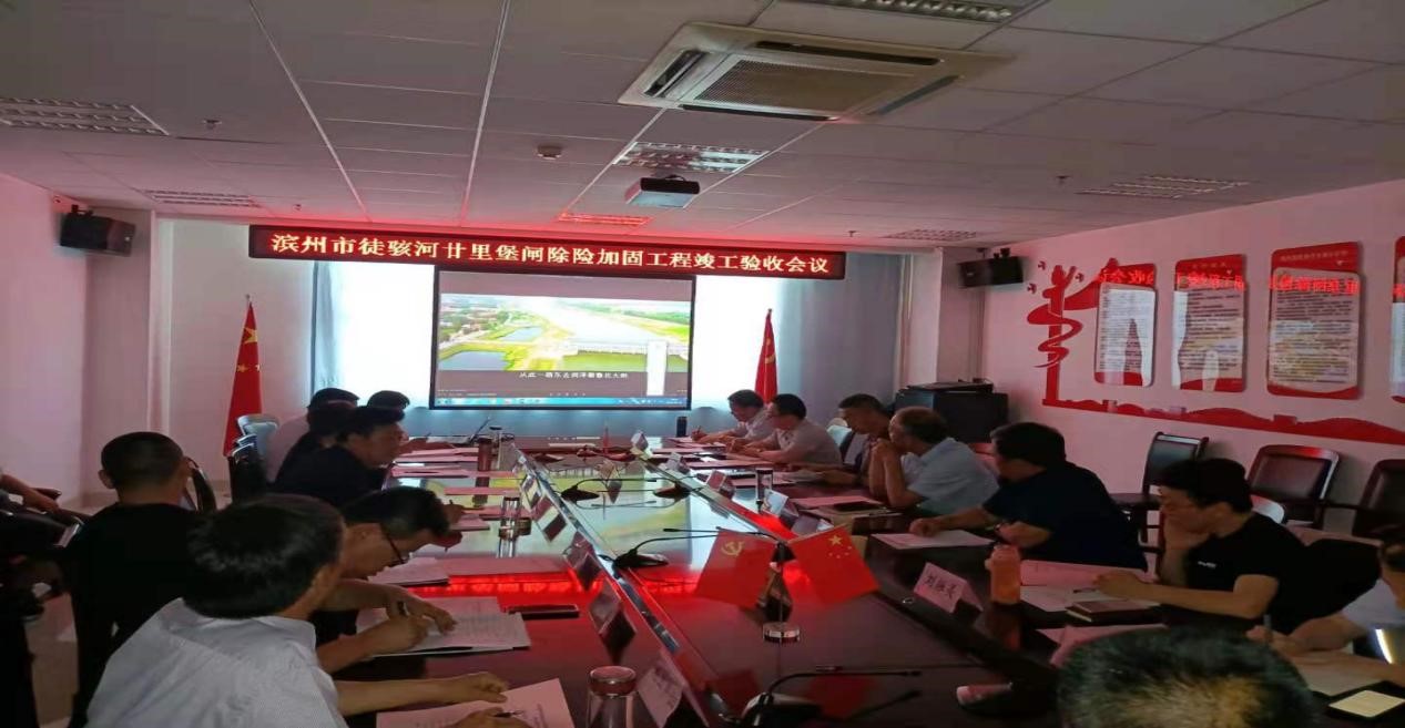 2021年6月19日,滨州市水利局在滨州组织召开了滨州市徒骇河廿里堡闸除险加固工程竣工验收会议。参加会议的有滨州市水利局、山东省水利工程建设质量与安全中心、滨州市水利工程建设质量与安全监督站、滨州市水利资源开发建设中心、滨州市徒骇河廿里堡闸除险加固工程建设管理处、山东省水利勘测设计院、山东省水利工程建设监理公司、东营市汇科工程质量检测有限公司、乐鱼网页版-乐鱼online(中国) 、北京中天正工程项目管理有限公司等有关单位的代表及专家。 会议成立了滨州市徒骇河廿里堡闸除险加固工程竣工验收委员会,验收委员会经过察看工程现场,观看工程建设声像资料,认真听取工程建设管理工作报告和竣工技术预验收工作报告,审查工程有关档案资料,认为该工程已按批复的设计内容和要求完成,工程建设质量符合设计和有关规范、规程、合同要求,工程档案资料齐全,未发生质量和安全事故。工程初期运行正常,已发挥初步效益,具备验收条件,工程竣工验收委员同意工程通过竣工验收。