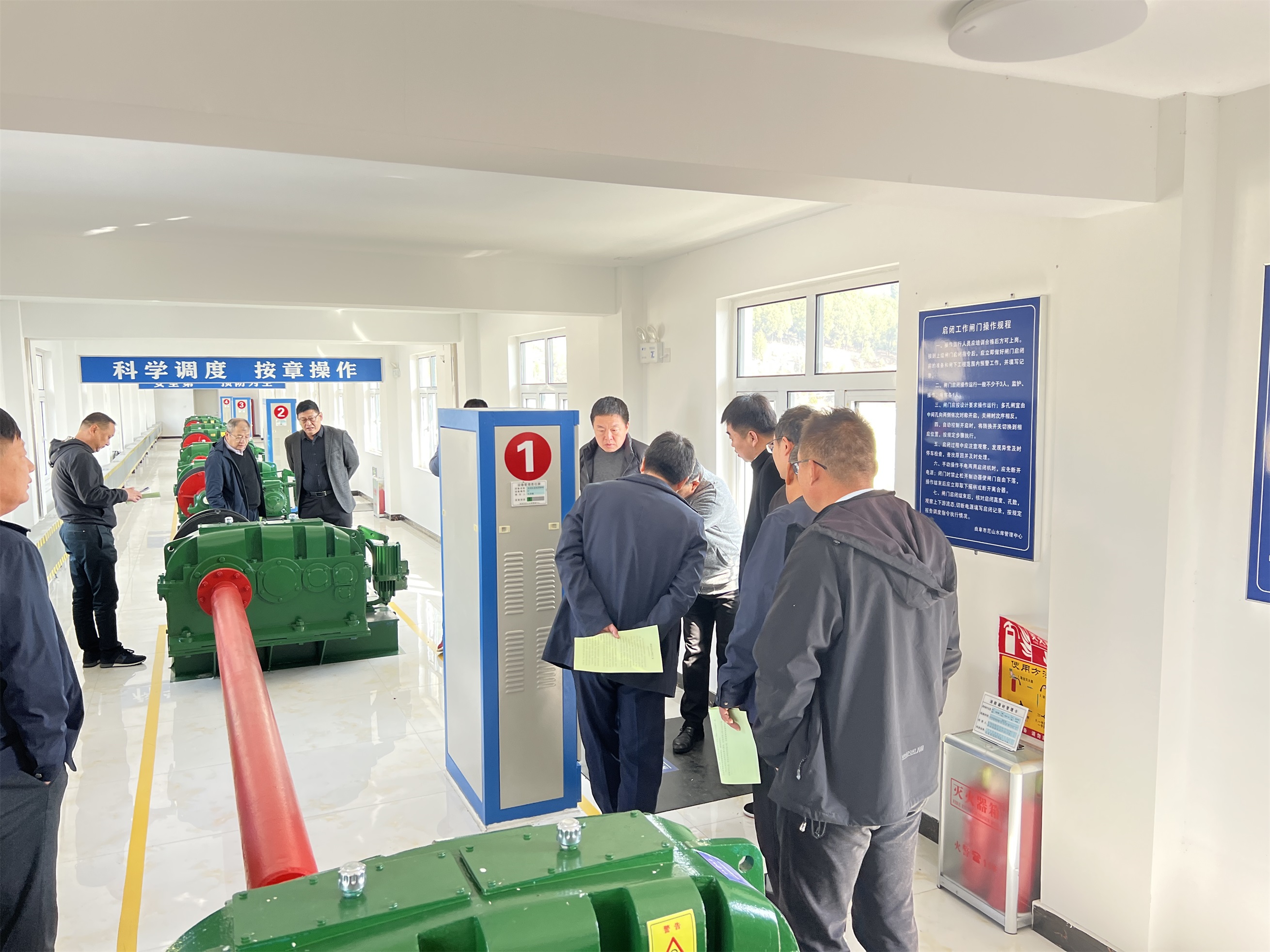 11月14日,刘保法等一行前往曲阜尼山水库,参观了溢洪道及启闭机机房,详细了解我公司生产制作的闸门等产品,重点查看了溢洪道钢闸门密封及启闭机齿轮硬度、齿面咬合等情况。尼山水库项目的金属结构设备自投入使用以来,运行良好,售后服务及维护保养等方面受到社会业内人士的一致好评。