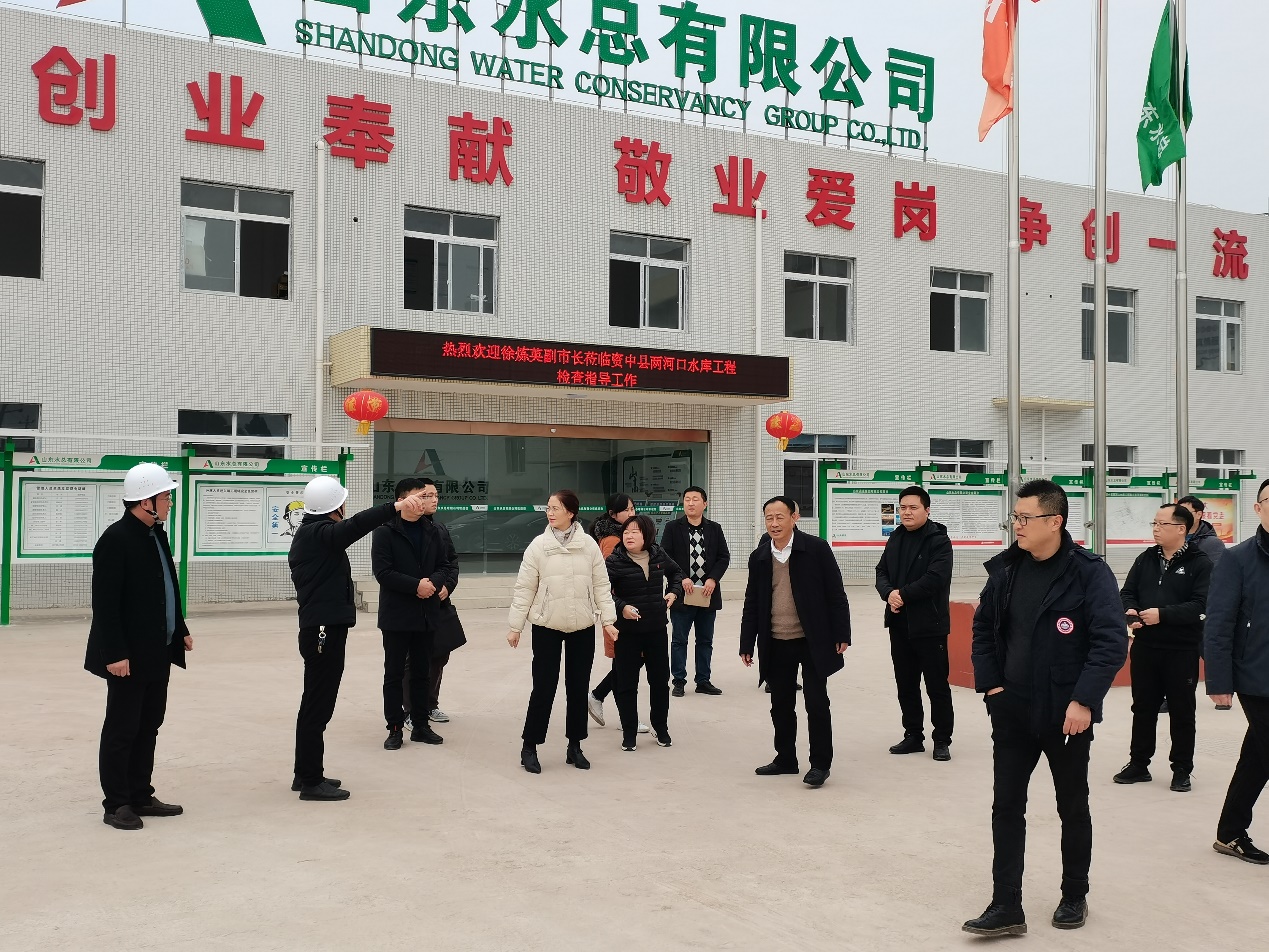 徐炼英一行听取项目总体建设情况汇报,到项目现场查看工程进展情况,对工程进展和质量管控表示认可,对山东水总在内江市水利建设做出的贡献给予高度评价。