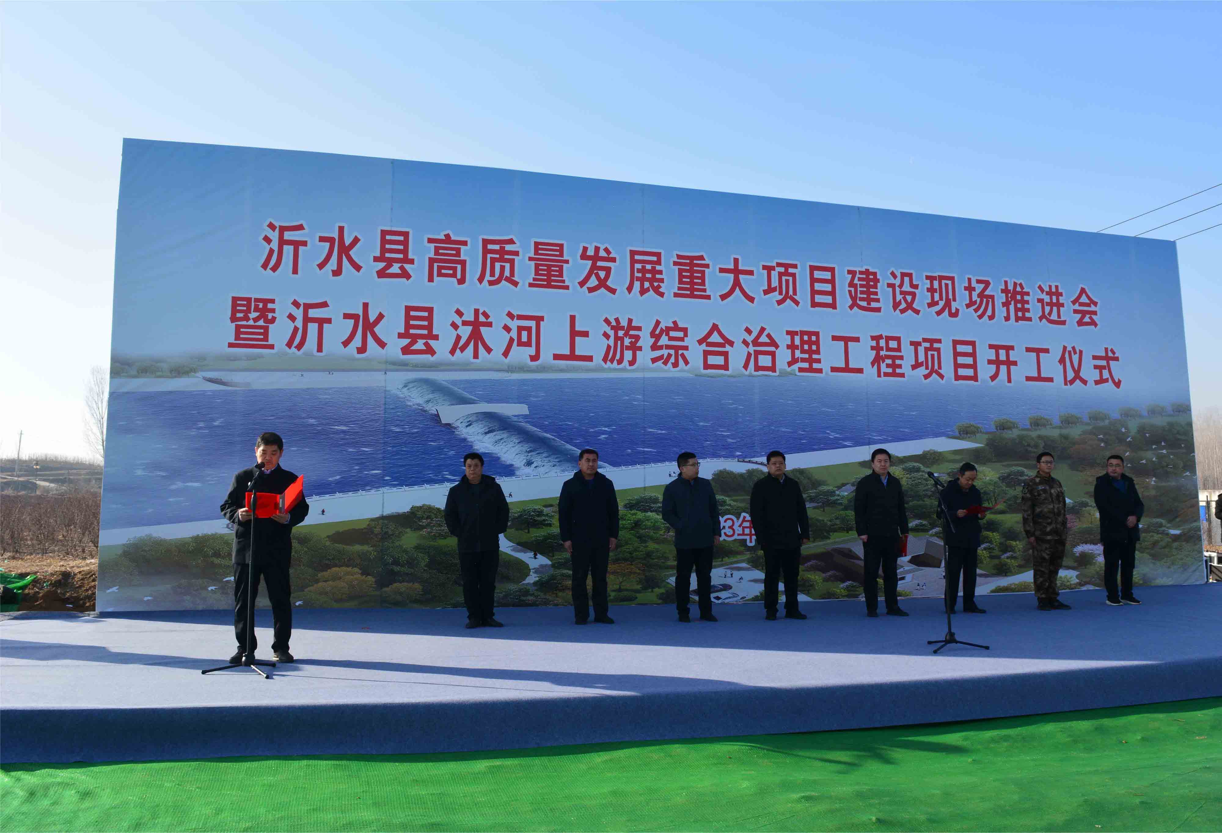 2月14日上午,沂水县高质量发展重大项目建设现场推进会暨沭河上游综合治理工程开工仪式在项目现场隆重举行。县政府副县长韩庆出席,县水利局等相关单位人员参加,公司党委副书记、董事、总经理靳文硕代表山东水总发表讲话。