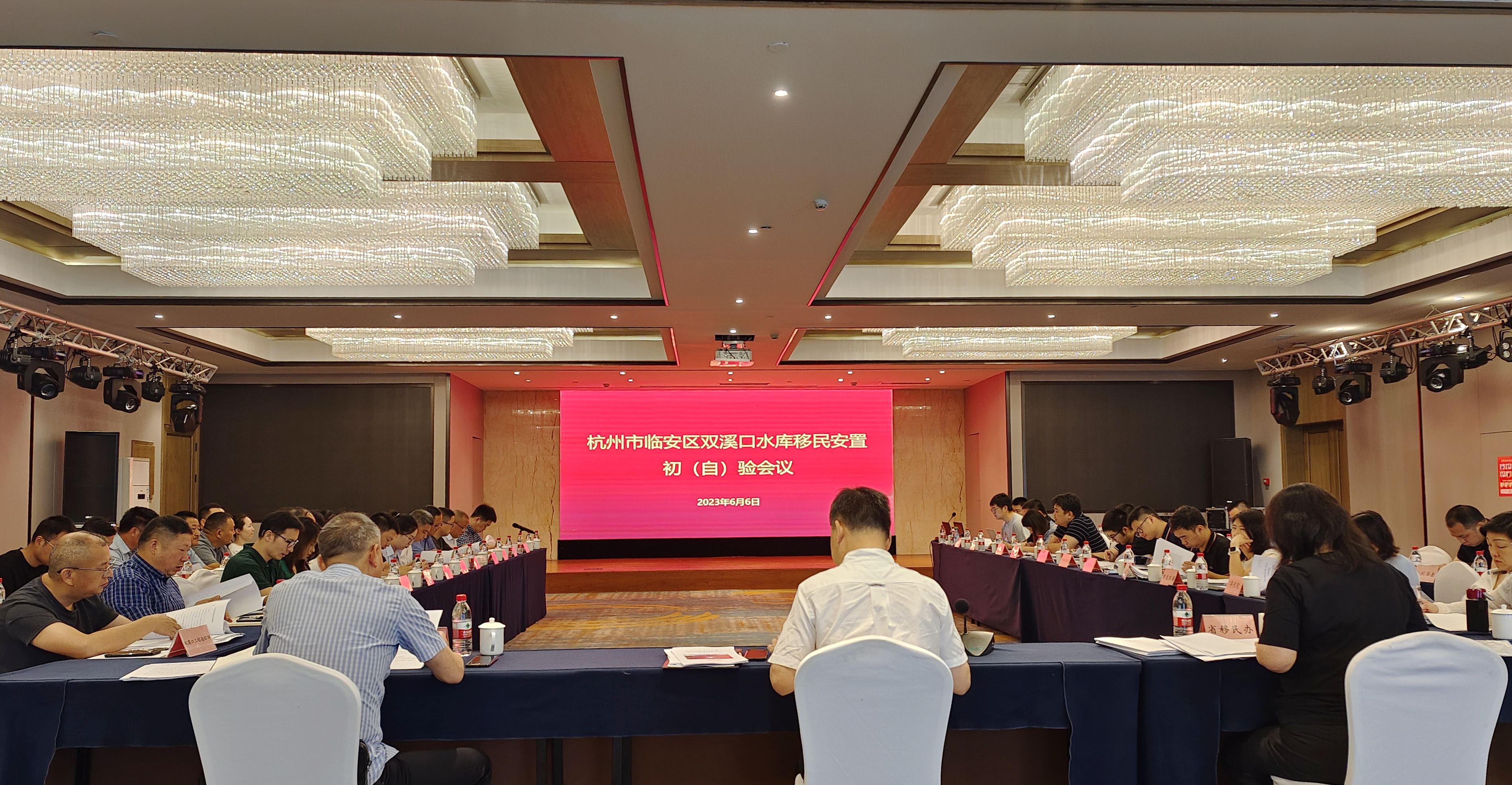 6月5日至6日,杭州市临安区双溪口水库工程下闸蓄水阶段移民安置初(自)验会议在临安区召开,省移民办、市交通运输局、市林水局、区政府、区水利水电局、双溪口工程指挥部、杭州鲁润水电开发有限公司等40家单位参加了会议。