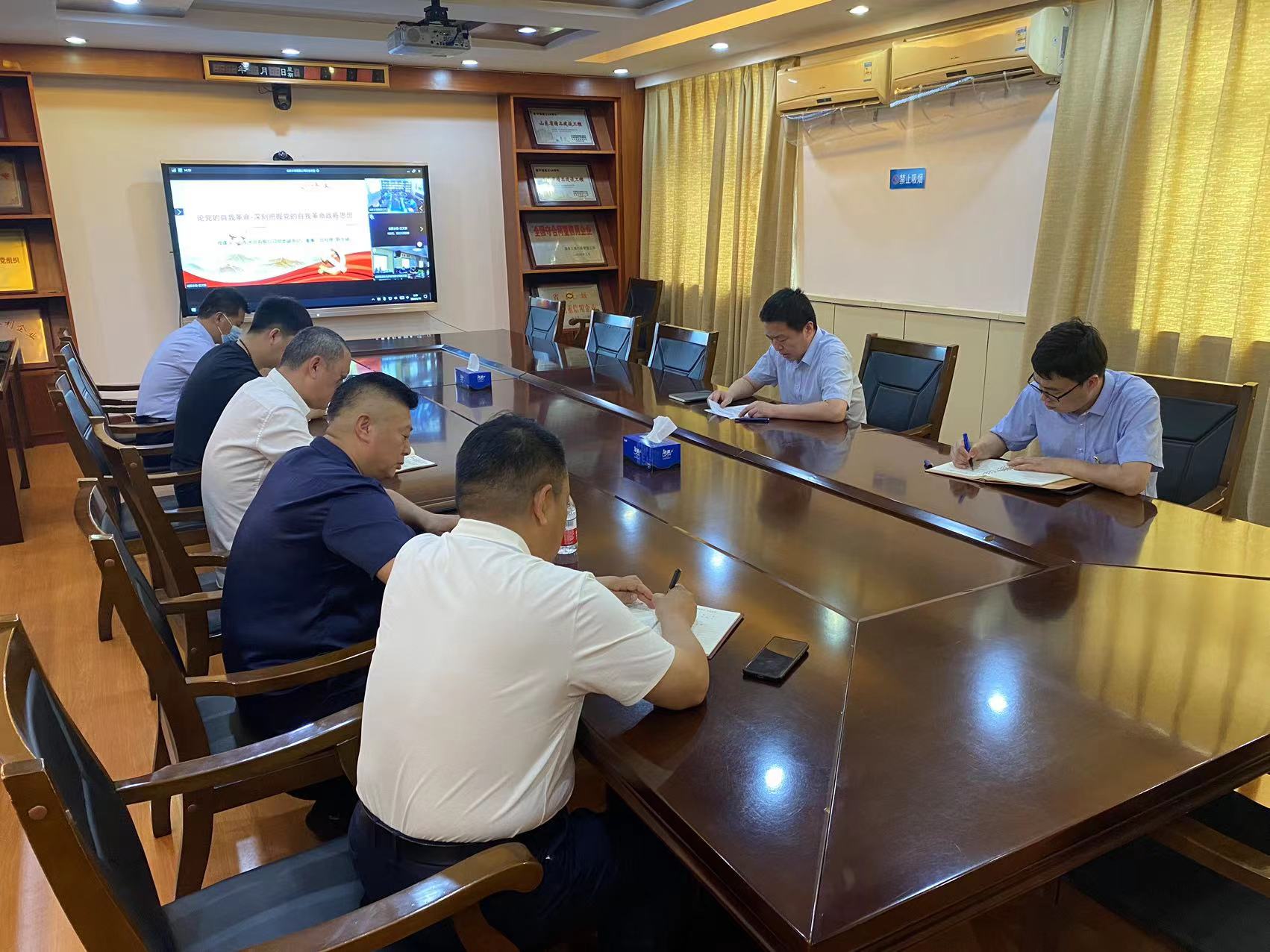 6月19日,公司党委副书记、董事、总经理靳文硕以“论党的自我革命—深刻把握党的自我革命战略思想”为主题,为建筑劳务公司党支部、杭州鲁润公司党支部讲授主题教育专题党课。