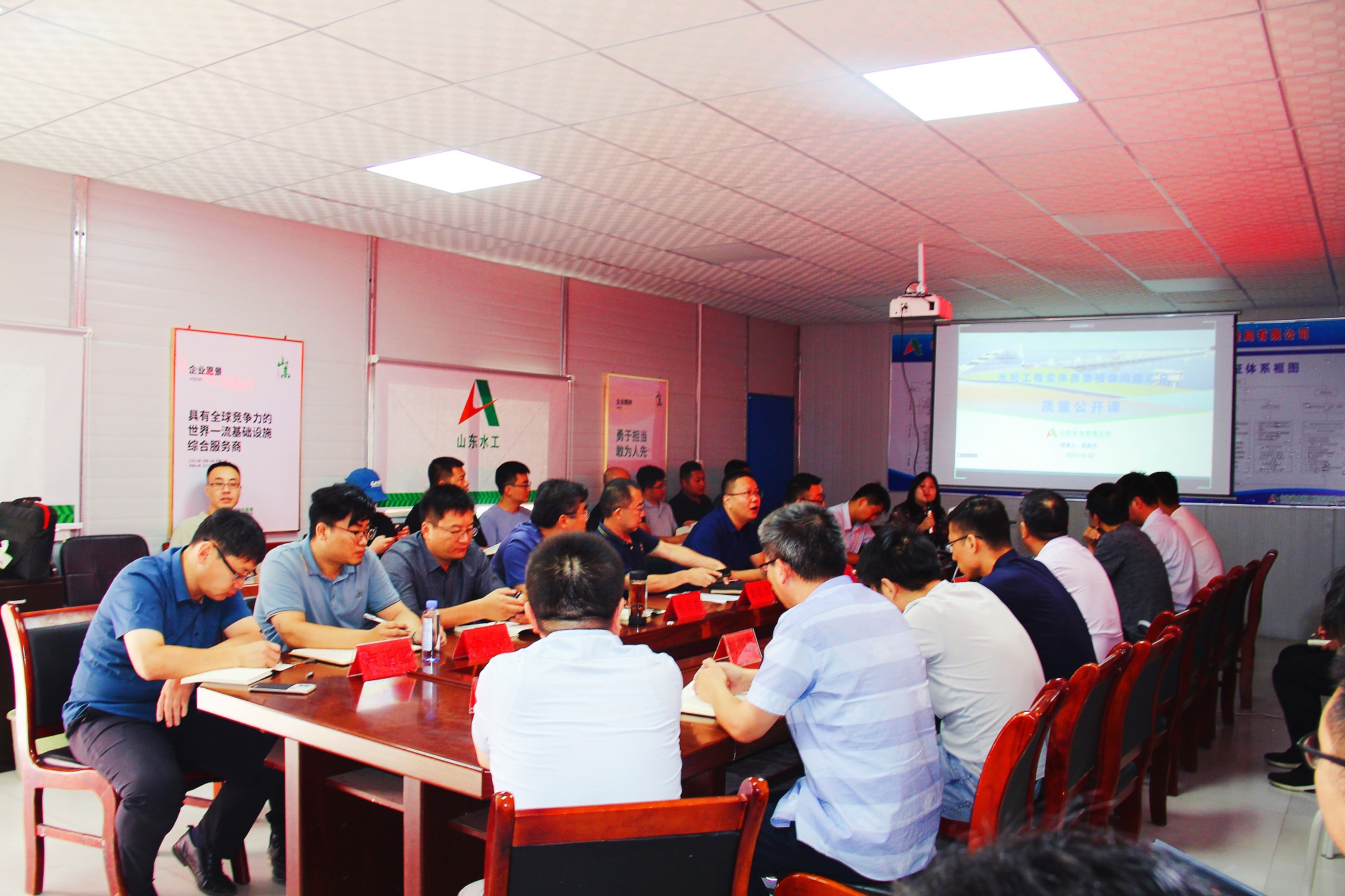 近日,公司联合山东省水利工程局有限公司举办质量管理典型项目交流会,各单位相关分管人员、典型项目代表40余人参加现场观摩,并进行质量管理经验交流。