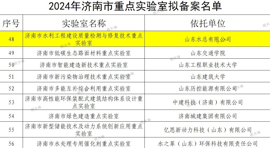 近日,济南市科技局组织开展了2024年度济南市重点实验室备案工作。经历下区审核推荐、专家评审、现场考察、济南市科技局党组会研究,公司申报的济南市水利工程建设质量检测与修复技术重点实验室顺利通过认定。